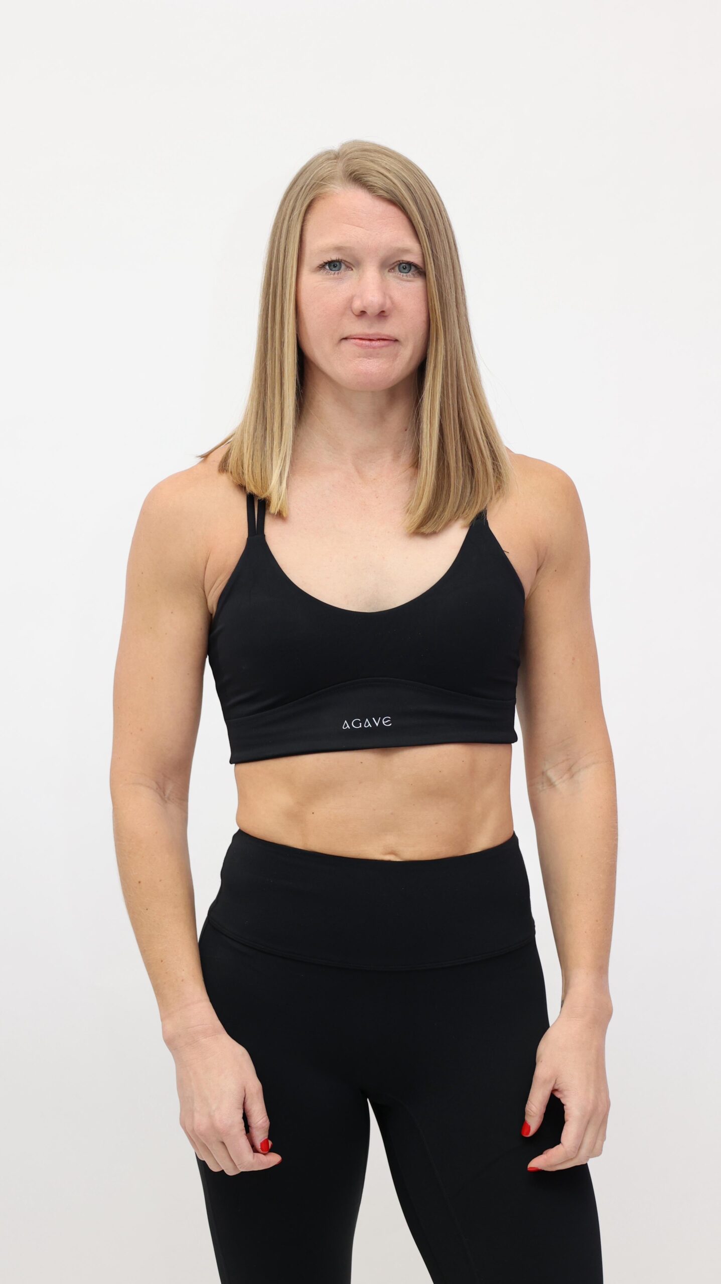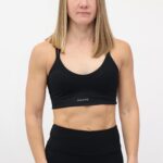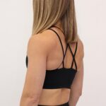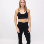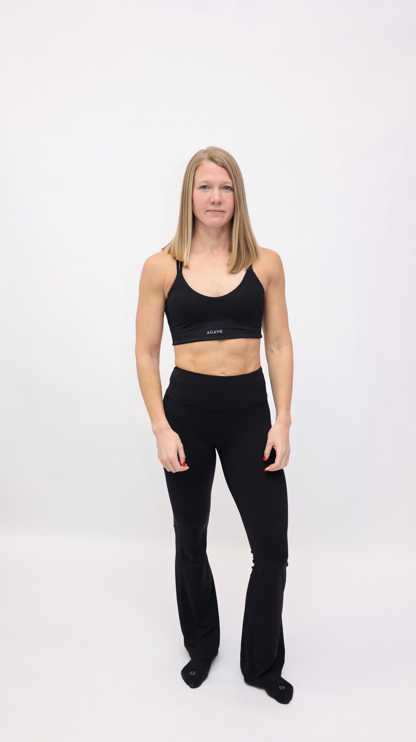 The high-waisted flare leggings contour the waist and elongate the legs, creating a sleek, balanced silhouette. The supportive top offers a clean, minimal design that enhances comfort and flexibility.