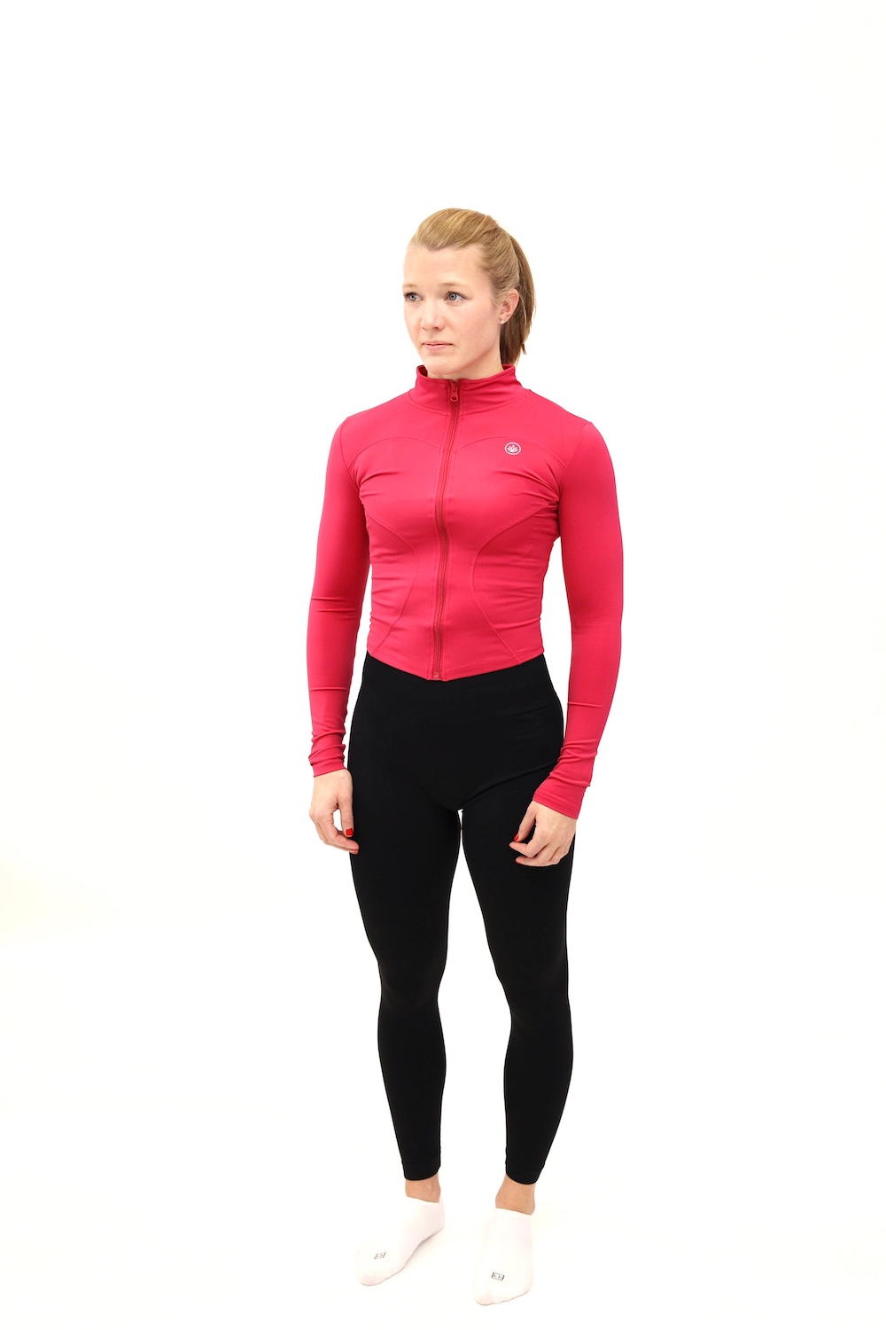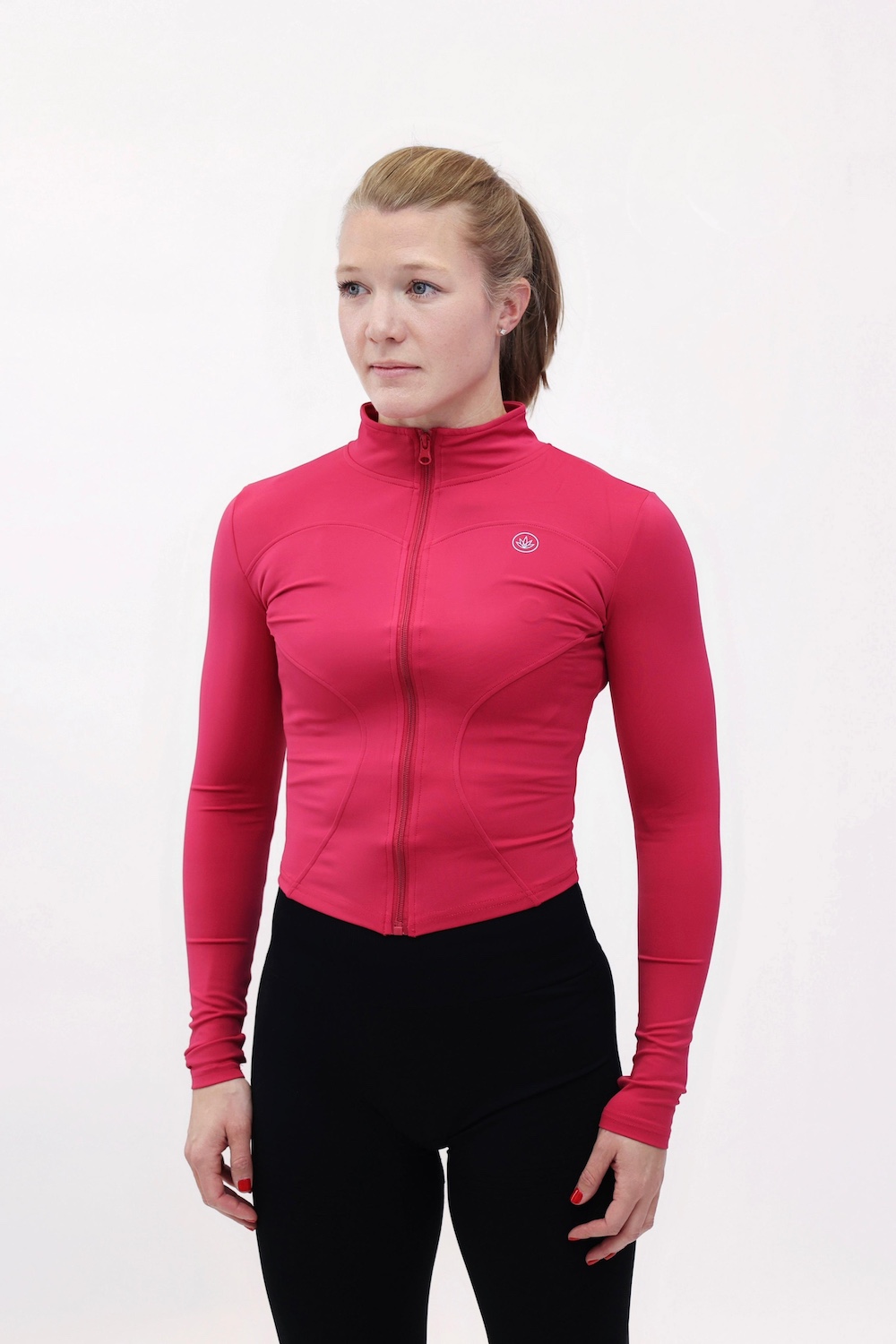 Sleek full-zip jacket with a clean front seam that elongates and sculpts. Designed for movement with a refined athletic finish.